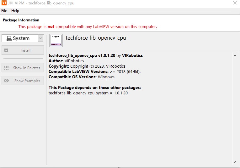 1) Error: This package is not compatible with any LabVIEW version on this computer¶