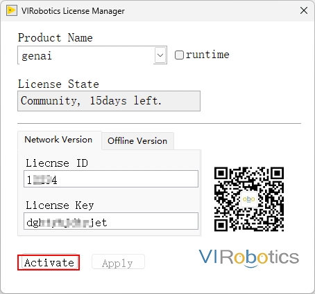 genai或vi_advisor填入 License ID / Key