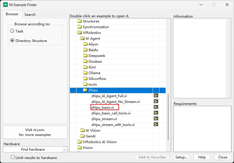 先运行基础对话示例basic.vi,再运行完整示例(上下文/流式/工具调用)