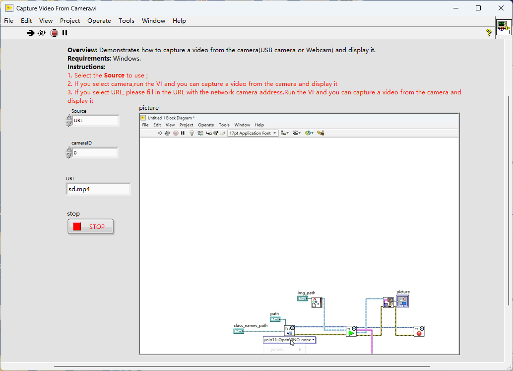 路径中找到。也可以在LabVIEW的help中找到,具体方式为:Help>>Find Examples>>Directory Structure>>VIRobotics>>AI Vision>>YOLOv8双击打开
