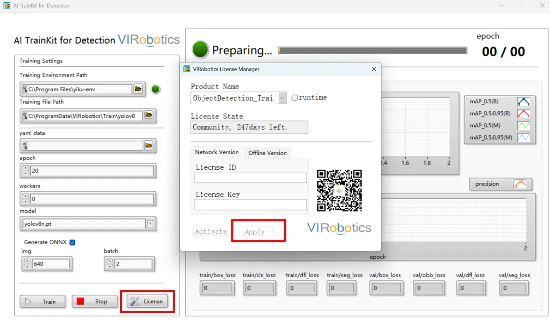 同理,Product Name中输入ObjectDetection_Train,点击Offline Version—文件按钮--选择对应的.lic文件—点击OK,点击“Activate”即可成功激活,激活成功后,可以看到License State 为“Offline Perament Version”.