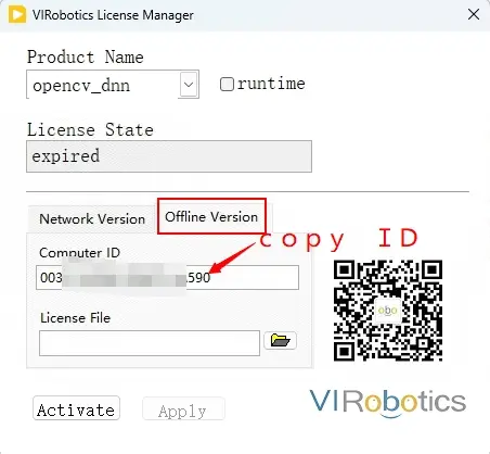 点击“Offline Version”这一栏,提供Computer ID给VIRobotics,工作人员会给您发送相应的许可证文件;