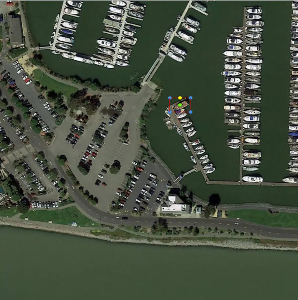 当然我们需要标注目标物体的旋转角度,因此我们需要调整图中的红框实现与船只角度的相对平行。点击需要调整的目标框,点击编辑框;